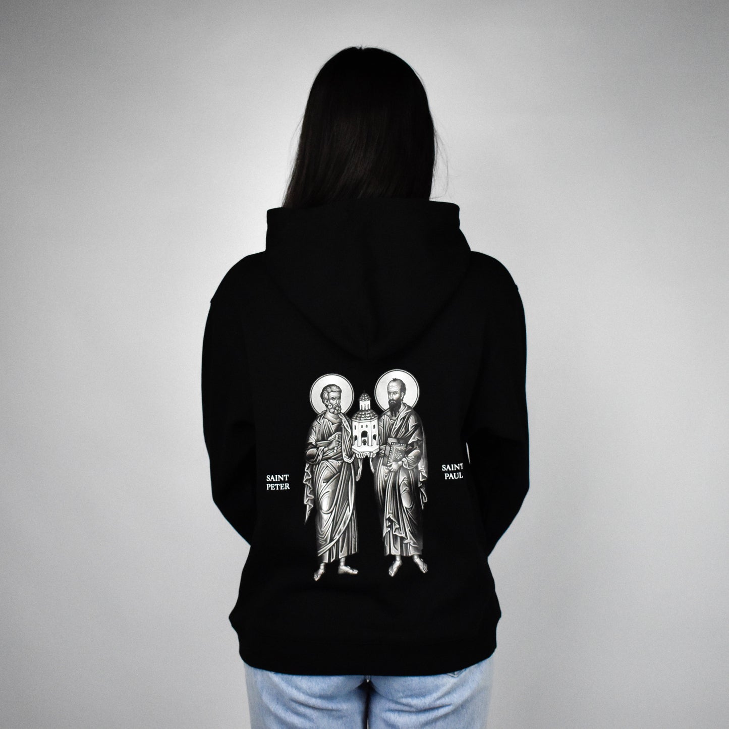 This meticulously crafted Classic Fit Jumper blends luxurious comfort with timeless style, providing warmth and a cozy feel, ideal for the cooler seasons. Its design pays homage to St. Peter and St. Paul, celebrated as the foundational pillars of the church. St. Peter symbolizes the institutional church, while St. Paul represents its spiritual essence.